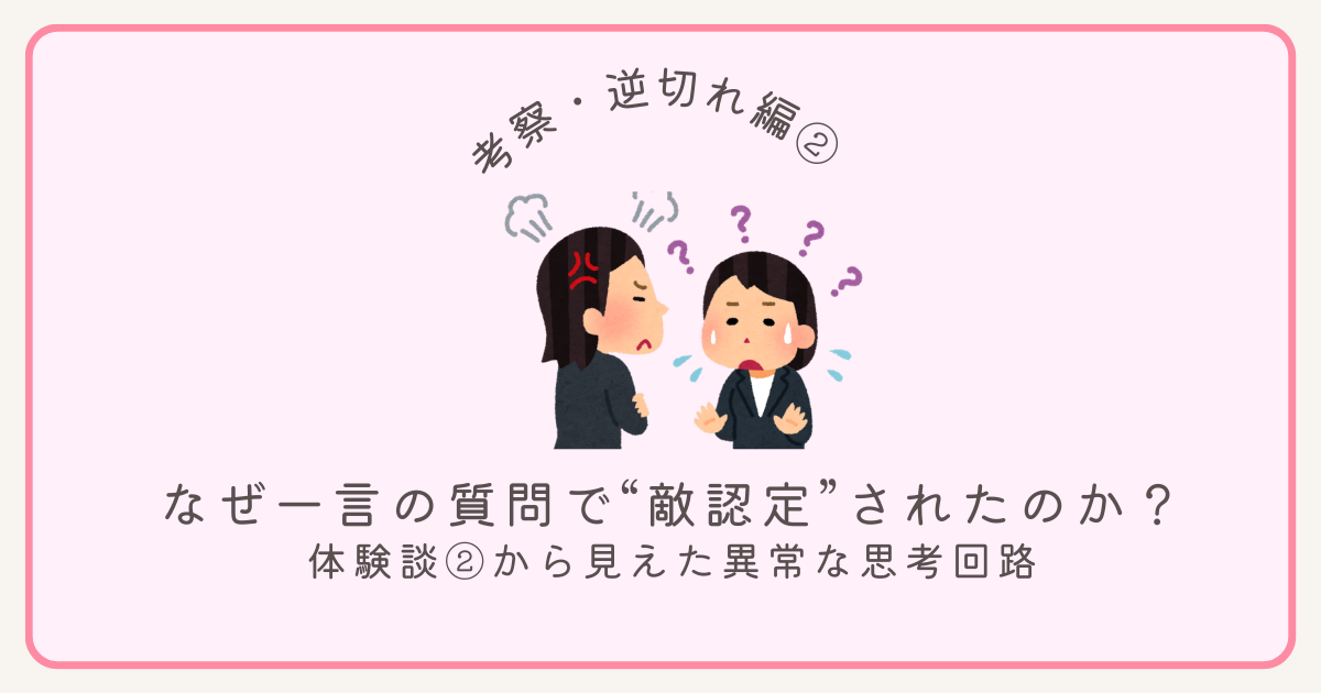 【考察】なぜ一言の質問で“敵認定”されたのか?体験談②から見えた異常な思考回路