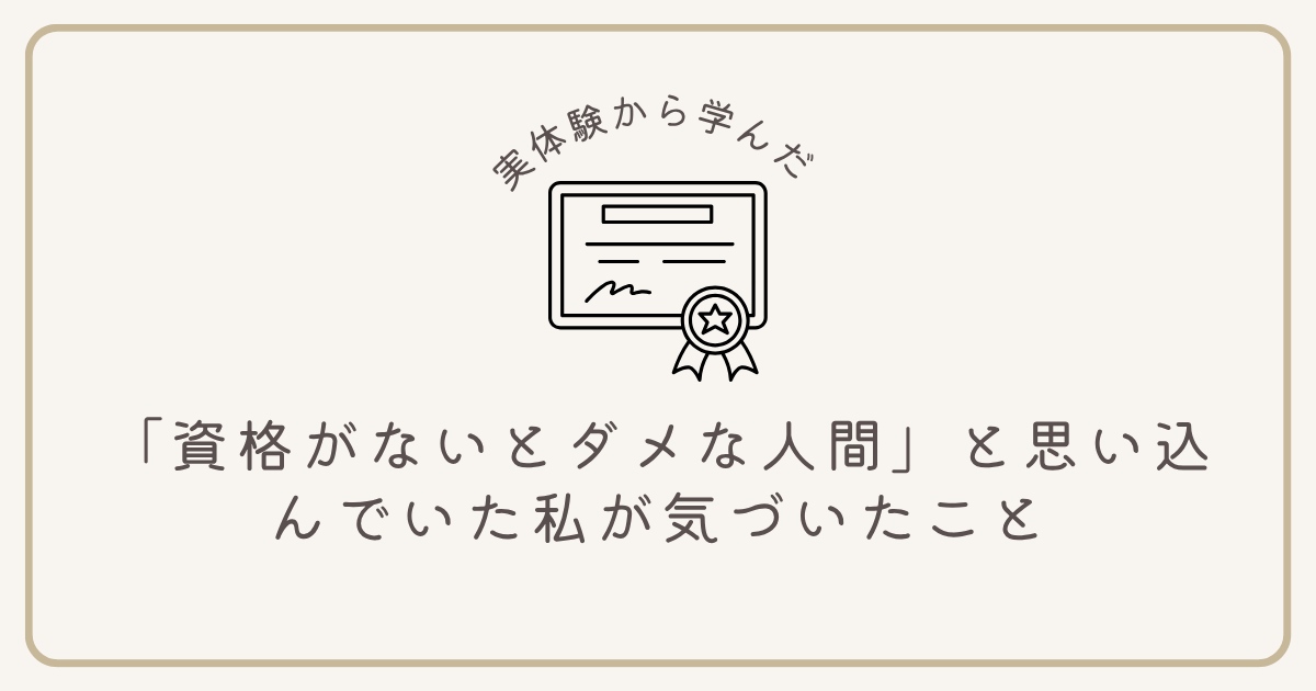 それ以来、私の中には「資格がないと価値がない」「資格がなければ認めてもらえない」という思い込みが根付いてしまいました。
